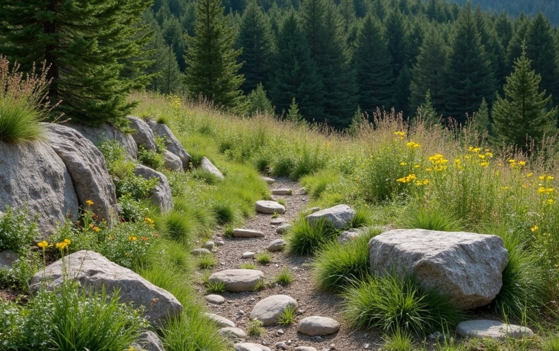 Native seed mixes thrive where traditional lawns fail rocky soil, tree roots, and shaded edges become low-maintenance beauty zones.